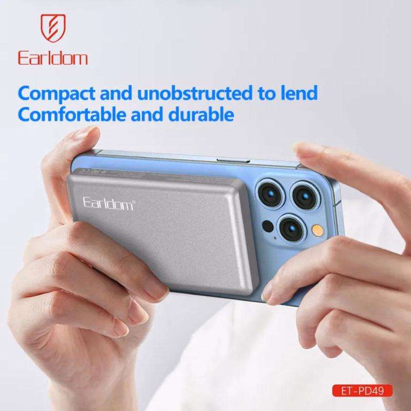 پاوربانک Earldom PD49 با ظرفیت 10000 میلی‌آمپر، پشتیبانی از شارژ سریع PD 20W، شارژ بی‌سیم 15W و نمایشگر LED، گزینه‌ای مناسب برای کاربران گوشی‌های هوشمند و تبلت‌ها است. طراحی جمع‌وجور و بند دستی، حمل و استفاده از آن را آسان می‌کند.